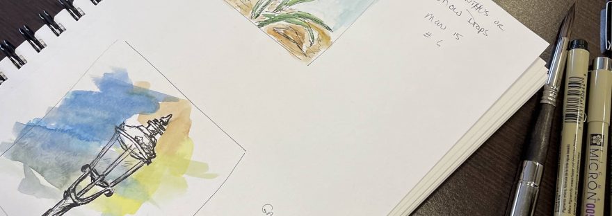 It’s time to add more colour to my sketches but the world is still grey and brown. At least the sun brings out the blue of sky and water.